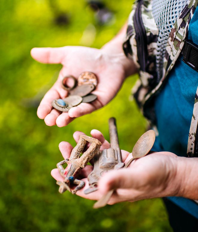 “Michael quite literally listens as he painstakingly traverses the property with his equipment, listening for the sound of iron and other metals buried inches below his feet. He uncovers clues to how the people here before us lived, worked and played,” Beard says. “Few people write or document their everyday lives on paper, so we are left with physical clues that Mike uncovers.”