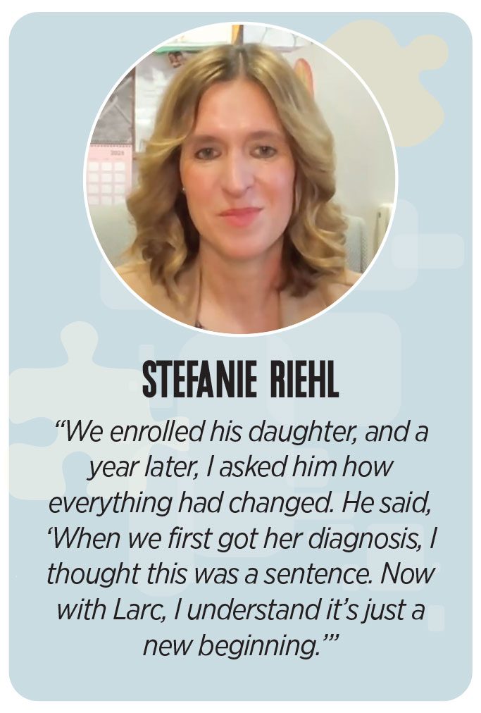 I answered a call from a father who was calling about his daughter who had this rare syndrome. He says, “You probably never heard of it.” He gives me the technical term, and I give him the slang term, and he says, “Oh, you’ve heard of it.” I said, “Well, for you, it’s very rare, but we have seen it before.” We enrolled his daughter, and a year later, I asked him how everything had changed. He said, “When we first got her diagnosis, I thought this was a sentence. Now with Larc, I understand it’s just a new beginning.”