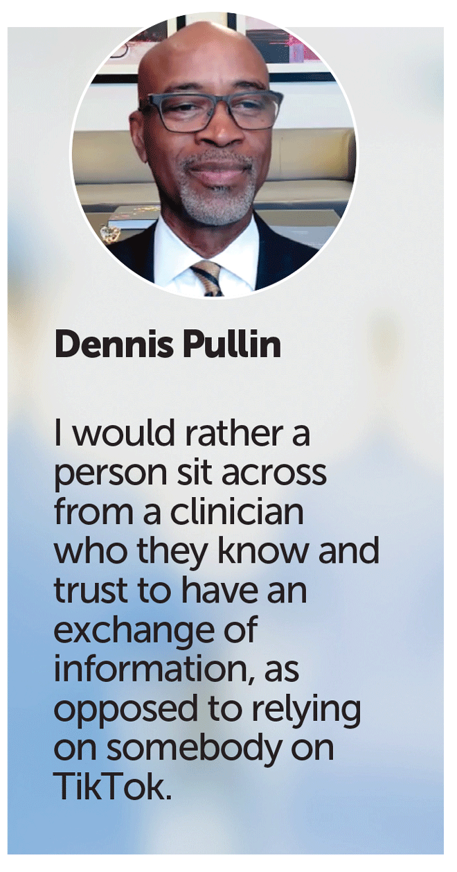 I would rather a person sit across from a clinician who they know and trust, and have an exchange of information, as opposed to relying on somebody on TikTok. I encourage people to build trust with providers who have committed to a life of learning, as opposed to relying on those want-to-be experts who don’t have a scientific background.