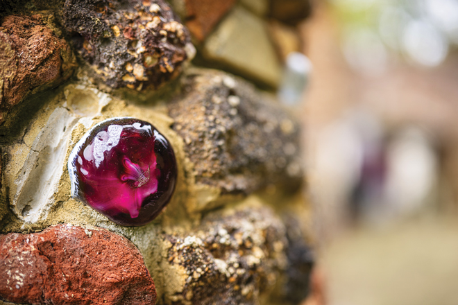 “Even the lumber is reclaimed,” Medio says. “All of the materials we used for the walls are recycled: brick, decorative pieces, bits of concrete and sandstone.”
