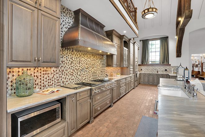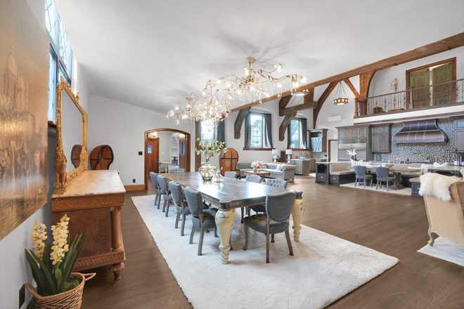 The building’s transformation began when the former owner purchased the property from the church in 2018. While the front of the home maintains a simple, unassuming facade, inside tells a different story. The Compass agents who just sold the property, Amanda Johnston and Michala Costello, both emphasized that the re-design was made with entertaining in mind. The sprawling first floor showcases original wood beams combined with chandeliers imported from Italy. And what was once a choir loft now serves as a mini game room.