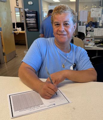 At first, she says, returning felt like a failure. But with support from staff, she began volunteering around the shelter: pitching in wherever she could. In 2020, she joined the staff, first as a greeter, then she trained for management. Today, she is often the first face guests see when they arrive.