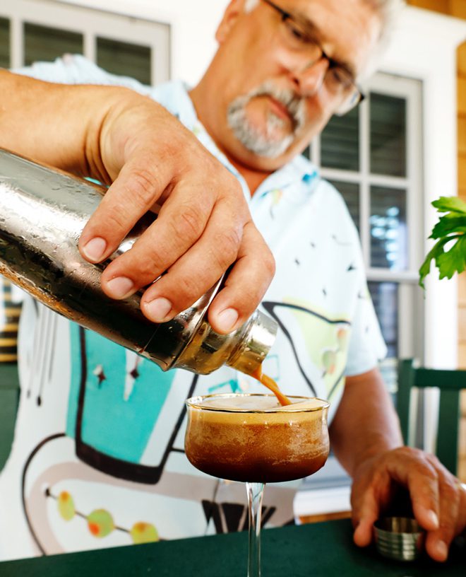Espresso martinis have always been one of Conrad’s favorite drinks, but in recent years they’ve experienced a huge surge in popularity. A few years back, he started making them in batches with a Cuban coffee he’d found on a trip to Key West, Florida, and bringing them to parties in a pitcher. Conrad, 55, soon gained enough of a reputation as a mixologist that Cape May’s Barefoot Bar invited him behind the bar to make his signature martini.
