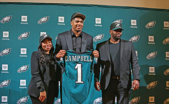 The Eagles attempted to move up from No. 32 to No. 22 in the first round to take Campbell, but couldn’t finalize the trade. Well past 11 pm on draft night, Philadelphia bumped up one spot to No. 31 in a trade with Kansas City, just to make sure they drafted their guy.