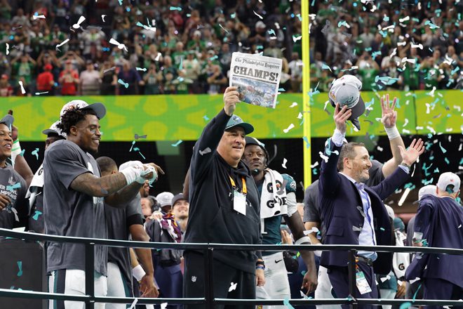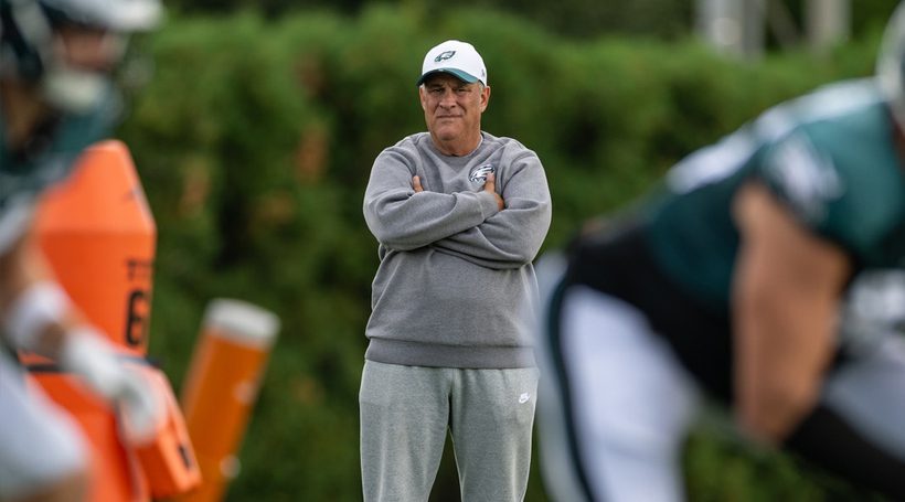 “Here” is with the Eagles in his second season. Year 1 was an amazing success – Fangio led the NFL’s No. 1-ranked defense – the youngest defense in the league, by the way – to a win in Super Bowl LIX and his defense shut the door and threw away the key on quarterback Patrick Mahomes and the Kansas City Chiefs. The Eagles recorded three takeaways – one an interception that defensive back Cooper DeJean returned for a touchdown – and had six sacks against Mahomes and shut out the Chiefs until the third quarter, by which time the Eagles had a huge lead.
